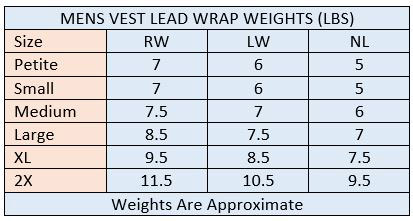EZ Wrap Full Lead Vest. Full front overlap design saves weight. Distributes weight between shoulders and hips. 0.5mm Pb equivalency protection front, 0.25mm back. Hook & loop closure (Velcro) is fast and easy. Vests no longer include the two 1" safety buckles as shown. Available in regular weight (RW), lightweight (LW) and Super-Lite Lead Free (NL).